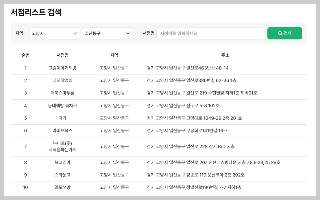 - 사용 가능한 서점은 지역화폐 가맹점 중 서점 업종만